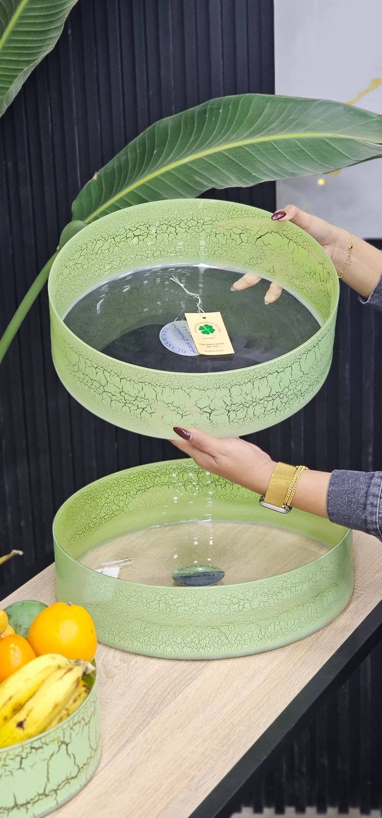 Add a splash of vibrant color and sophisticated texture to your home with the Julia Murano-Style Glass Serving Bowl Set. Inspired by classic Italian glass artistry, these high-quality glass bowls feature a beautiful lime green color and an intentional “crackle” or “tessera” finish that gives them a unique, tactile surface and rich visual depth. The set includes two graduated sizes, making them versatile for various uses: