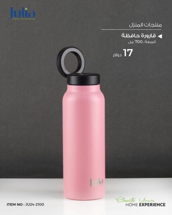 Experience the perfect blend of style and practicality with the Julia Thermal Water Bottle. This bottle features a sleek, matte pink finish that adds a fun and modern touch to your everyday essentials. Its double-wall vacuum insulation technology is designed to keep your beverages at their ideal temperature for hours, whether you prefer them hot or cold. The innovative lid includes a foldable handle, making it incredibly easy to carry or store in a bag without the handle getting in the way. With a generous 700 ml capacity, this bottle is a perfect choice for staying refreshed during your commute, at the gym, or throughout your workday.