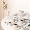 Premium porcelain tea set from the Asalah Collection featuring 12 pieces (6 cups and 6 saucers) in sophisticated Olive with Gold accents. Perfect for serving tea with style.